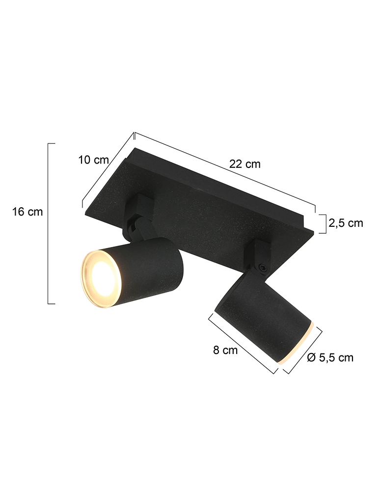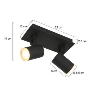 Der 2-flammige Noirs-Strahler kombiniert praktische Beleuchtung mit einem klaren Design. Beide Strahler sind dreh- und schwenkbar, sodass du die Lichtstrahlen genau nach deinen Wünschen ausrichten kannst. Die mitgelieferten GU10-Lampen haben eine Dimm-to-Warm-Funktion, wodurch die Lichtfarbe von 2200 bis 2700 Kelvin anpassbar ist. Mit einer Breite von 22 cm passt dieser Strahler perfekt in moderne Innenräume.