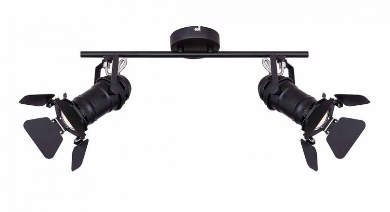 Beleuchte dein Interieur auf einzigartige Weise mit der Egon Spotlight-Serie, die dein Zuhause attraktiv macht. Dieses schwarze Metall-Design verfügt über zwei verstellbare Spots an einem geraden Arm, inspiriert vom Look eines Filmsets. Verstärke den Realismus mit beweglichen Klappen, die an jedem Spot befestigt sind; jeder Spot ist mit einem GU10-Anschluss (maximal 50 Watt) kompatibel, also achte darauf, dass du die passende Lampe auswählst. Ergänze deine Kollektion mit weiteren Spots aus dieser Serie für einen kompletten Look.
