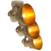 Der bronzene 3-flammige Decken- oder Wandscheinwerfer aus der Gearwood Spot-Serie von Mexlite ist mit drei verstellbaren Spots ausgestattet, sodass du die Lichtstrahlen nach Wunsch ausrichten kannst. Die Spots sind dreh- und schwenkbar dank der großen Verstellräder. Die Lampe hat eine E27-Fassung und ist für Lichtquellen bis 40 Watt geeignet. Du kannst die Lampe mit einem externen Dimmer (nicht im Lieferumfang enthalten) und einer geeigneten Lichtquelle dimmen. Der Metallschirm hat einen Durchmesser von 15 cm und die Gesamthöhe des Leuchtmittels beträgt 19 cm.