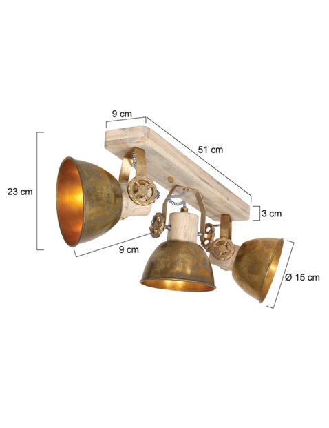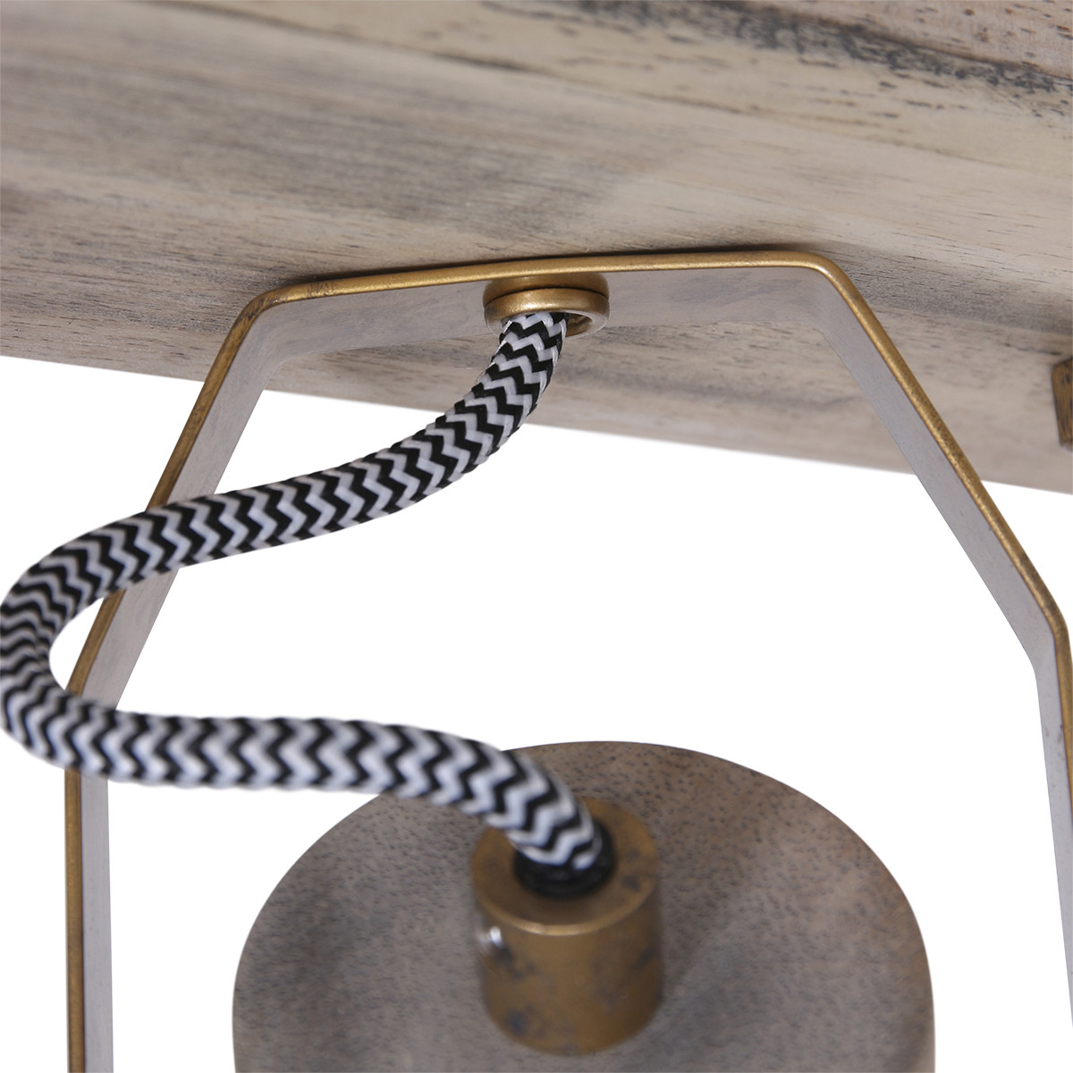 Genial, dieses „Gearwood“ von Mexlite. Wenn du einen ländlichen, industriellen oder zeitgenössischen Wohnstil hast, ist diese dreiflammige Deckenleuchte ein Muss. Auf einer hölzernen, rechteckigen Decken- oder Wandplatte befinden sich drei Richtspots mit Holzfassungshaltern. Die halbrunden Schirme bestehen aus Metall, ebenso wie die Zahnräder. Das Metall hat eine bronzefarbene Beschichtung, das Holz ist weiß gewaschen. Davon wird man doch schwach, oder? Hol dir diesen Blickfang nach Hause!