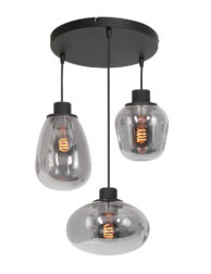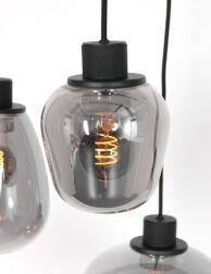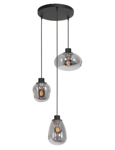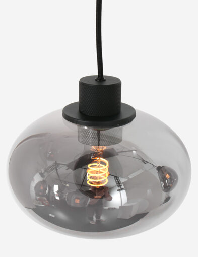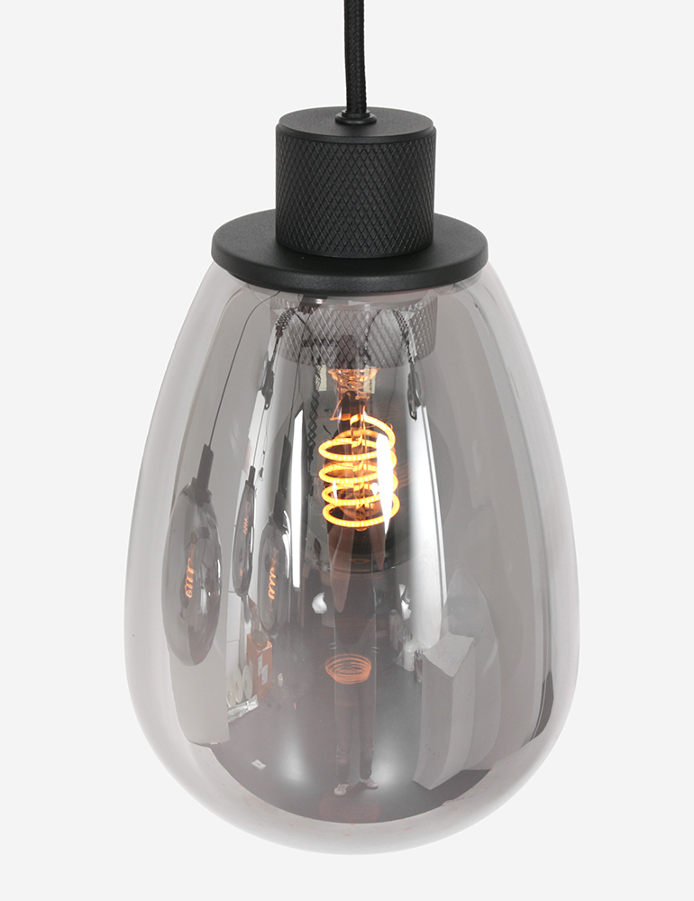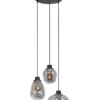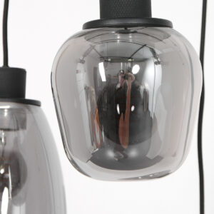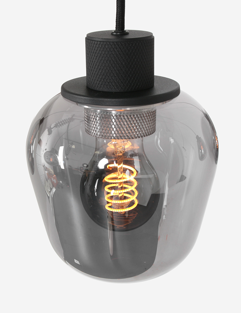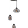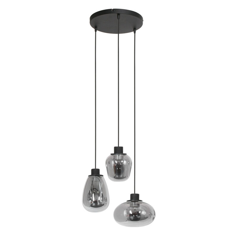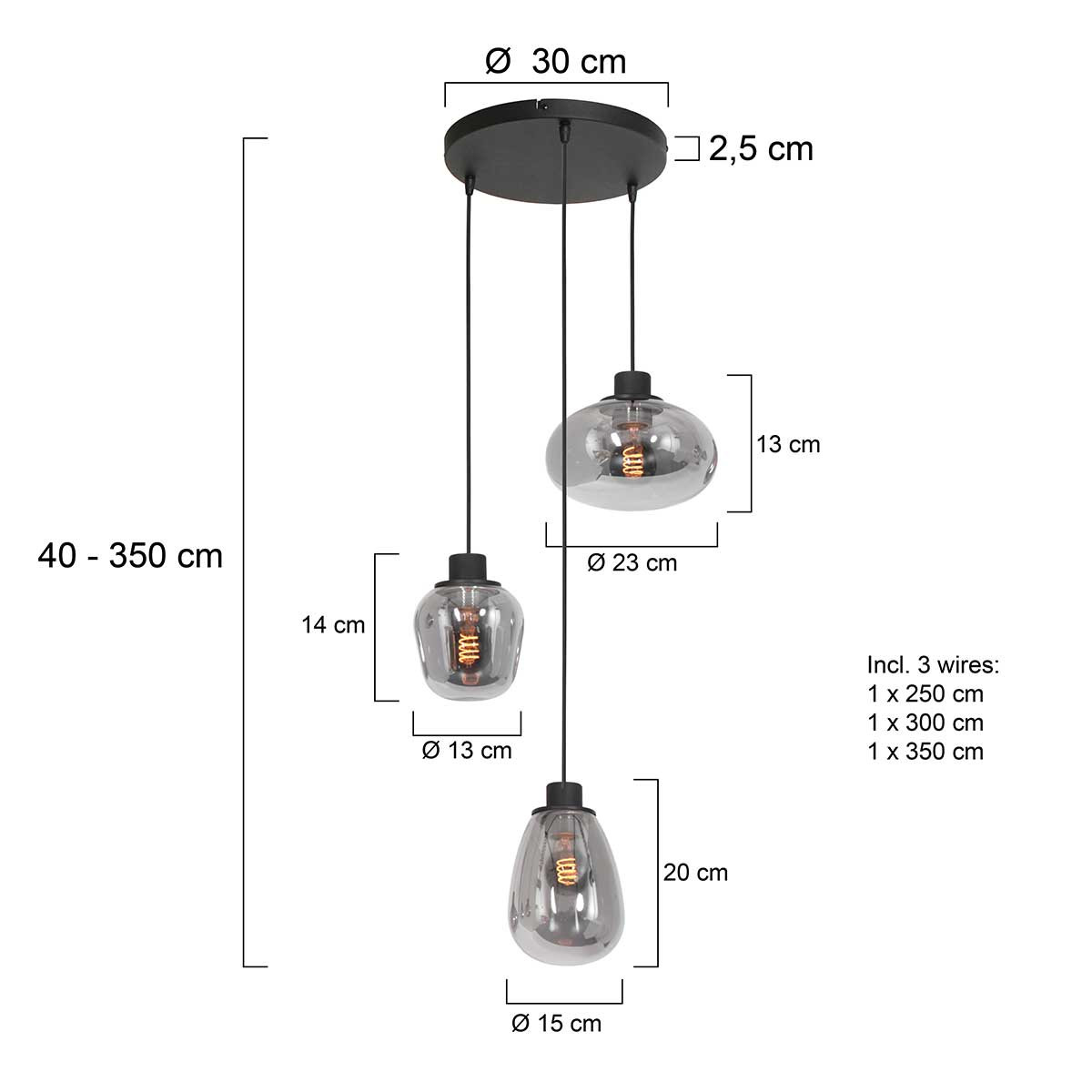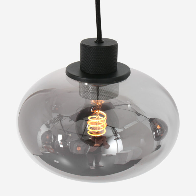 Die Reflexion 3-flammige Hängeleuchte ist eine stilvolle Ergänzung für jedes Interieur. Die drei rauchglasigen Lampen mit E27 Fassungen hängen an einer rechteckigen Deckenplatte und variieren in Form und Höhe, wodurch sie eine verspielte Ausstrahlung haben. Der Durchmesser der Lampe beträgt 40 cm und die Gläser sind einzeln in der Höhe von 30 bis 370 cm verstellbar. Dank der großzügigen Kabellänge ist diese Lampe auch perfekt als Beleuchtung für hohe Räume. Dimmbar mit einem Wandschalter und einer geeigneten Lichtquelle.