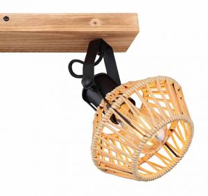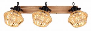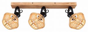 Feiere deinen Geschmack für einzigartiges Design mit diesem wunderschönen Spotlight-Deckenleuchtelement. Dekoriere deine Decke mit einer eleganten Halterung, die in Holzoptik gestaltet ist (58x16cm), an der drei matt schwarze Gelenke hängen, ausgestattet mit einer E27-Fassung und einem ansprechenden Textilkabelschirm (Ø15.5cm). Profitiere von der E27-Fassung, die es dir ermöglicht, die Lichtfarbe und Lichtstärke nach Wunsch zu regulieren, bis zu maximal 60 Watt. Um ein harmonisches Interieur zu schaffen, kannst du dieses Modell hervorragend mit anderen Elementen aus derselben Linie kombinieren.