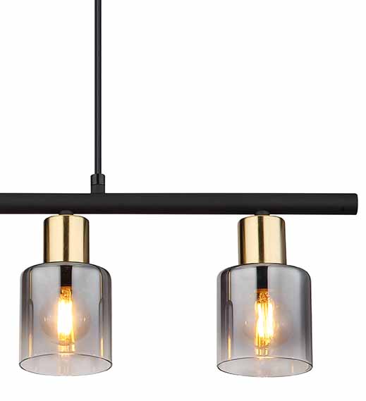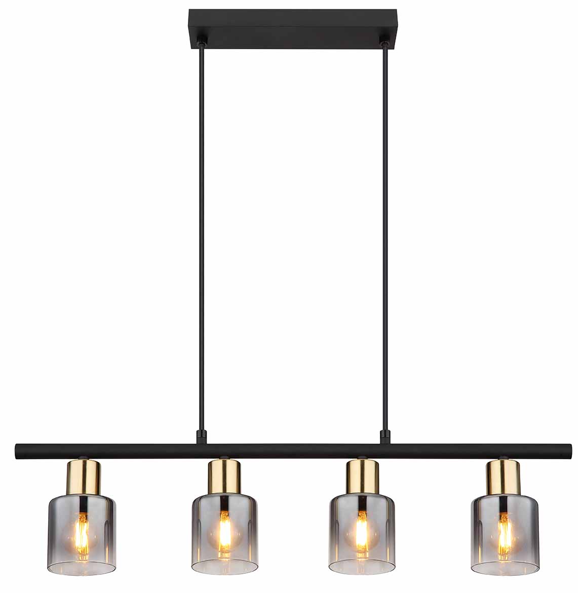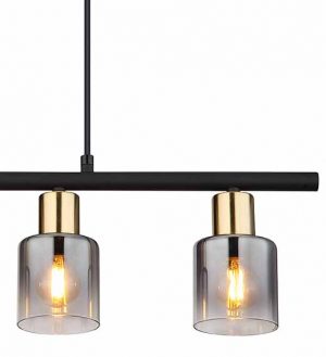 4-Kap Hängelampe schwarz/gold Rauchglas Globo Hollsy