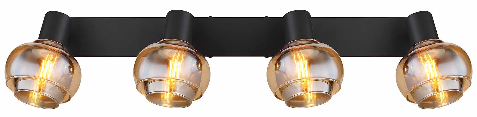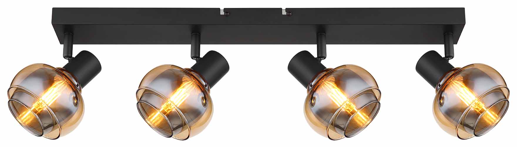 Transformieren Sie Ihre Räume mit bezauberndem Licht mit diesem vielseitigen Spot mit vier E14-Fassungen. Durch die Verwendung einer mattschwarzen Oberfläche und Variationen von bernsteinfarbenem und rauchigem Glas bietet dieser Spot eine stimmungsvolle und stilvolle Beleuchtungslösung. Die robuste Metallkonstruktion mit den Abmessungen 560x105x135mm fügt jedem Interieur ein auffälliges Element hinzu. Mit der E14-Verbindung haben Sie die Möglichkeit, die Helligkeit und Farbe des Lichts nach Wunsch bis zu einem Maximum von 40 Watt anzupassen, so schaffen Sie die perfekte Stimmung für jeden Anlass.