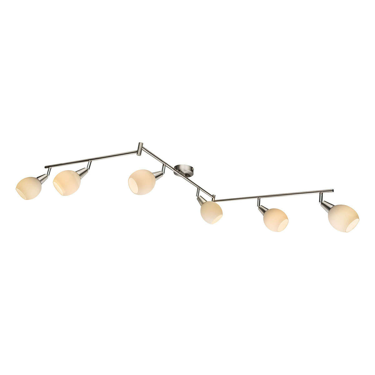 Mit seinen vielseitigen Eigenschaften zieht die Elliot Serie Nickel-Matt Deckenleuchte stark die Aufmerksamkeit auf sich. Sie verfügt über sechs verstellbare Arme mit eingebauten weißen Glasstrahlern, die dimmbar sind. Unser Set wird komplett mit sechs 3,5W LED-Leuchten geliefert, die austauschbar und farbveränderbar sind, mit einer mitgelieferten Fernbedienung. Die Farbbeibehaltungsfunktion garantiert, dass die zuletzt verwendete Farbe beim erneuten Einschalten der Lampe gespeichert bleibt. Innerhalb dieser Serie sind auch andere Leuchten mit denselben überlegenen Eigenschaften erhältlich.