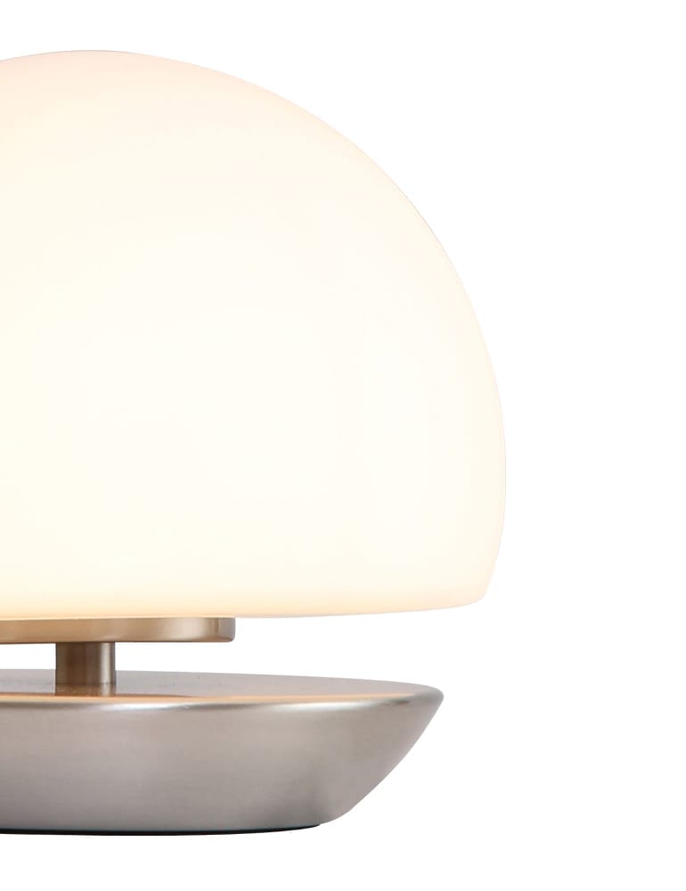 Die moderne Stahl-Tischlampe Ancilla von Steinhauer bietet klare und stimmungsvolle Beleuchtung. Der weiße Glasdiffusor und der stahlfarbene Fuß passen perfekt in moderne Innenräume. Dank des Touch-Dimmers ist die Lampe einfach zu bedienen, mit drei Lichtstufen. Inklusive G9-Fassung und LED-Lichtquelle.