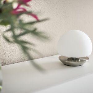 Die moderne Stahl-Tischlampe Ancilla von Steinhauer bietet klare und stimmungsvolle Beleuchtung. Der weiße Glasdiffusor und der stahlfarbene Fuß passen perfekt in moderne Innenräume. Dank des Touch-Dimmers ist die Lampe einfach zu bedienen, mit drei Lichtstufen. Inklusive G9-Fassung und LED-Lichtquelle.