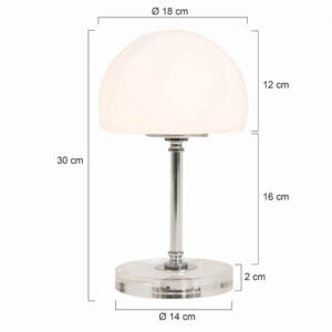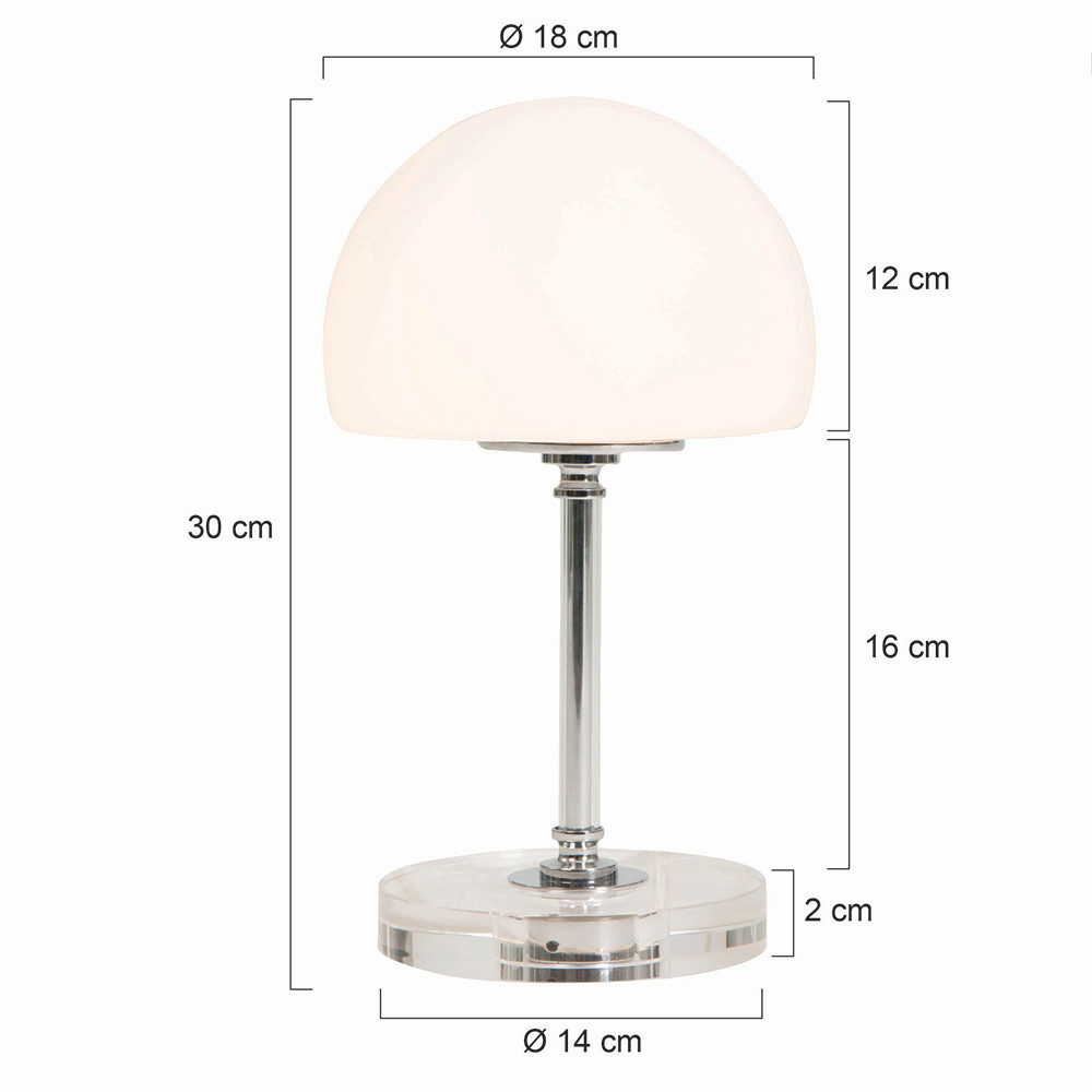 Die moderne chromierte Tischlampe Ancilla von Steinhauer ist eine raffinierte Ergänzung für moderne Innenräume. Mit einem Schirmdurchmesser von 18 cm und einer Gesamthöhe von 30 cm bietet diese Lampe stilvolle Beleuchtung. Ausgestattet mit einer G9-Fassung und einer LED-Lichtquelle von 3 Watt (350 Lumen, 2700 Kelvin). Der Touch-Dimmer ermöglicht es, einfach zwischen drei Lichtstufen zu wechseln.