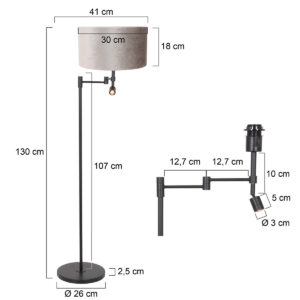 Beide Lichtquellen können separat mit Schaltern an der Fassung und dem Standrohr eingeschaltet werden. Dank des verstellbaren Arms kann die Beleuchtung einfach an den Raum angepasst werden. Mit einer Höhe von 120 cm, einem Fußdurchmesser von 26 cm und einer Kabellänge von 180 cm ist diese Stehlampe perfekt für moderne Interieurs, sei es im Wohnzimmer, Esszimmer oder einem stilvollen Arbeitsplatz.