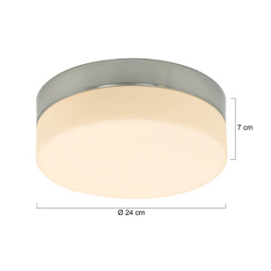 Diese weiße LED-Deckenleuchte aus der Ikaro-Serie kombiniert Eleganz und Effizienz. Mit einem Durchmesser von 24 cm und einem integrierten 18W LED-Modul liefert diese Lampe eine Lichtausbeute von 1440 Lumen bei einer Farbtemperatur von 2700 Kelvin. Der gebürstete Stahlrahmen und der weiße Glasschirm sorgen für eine stilvolle Erscheinung. Dank der IP44-Klassifizierung ist die Lampe für feuchte Räume geeignet. Der integrierte 4-stufige Dimmer mit Speicherfunktion ermöglicht eine einfache Anpassung der Lichtstärke über den Wandschalter. Diese Deckenleuchte der Marke Steinhauer wird mit 2 Jahren Garantie geliefert.