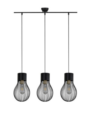 “Haben Sie eine neue Lampe?” Das werden Sie oft hören, denn diese schwarze Esstischlampe fällt auf. Drei Lampen in Form von Glühbirnen hängen an einem horizontalen Rohr. Bestimmen Sie die individuelle Höhe für einen spielerischen Effekt selbst. Diese Lampenschirme sind Drahtlampen und die Birnenform wird durch vertikale Metalldrähte gebildet. Lassen Sie sich „Dave“ von Trio Leuchten liefern?