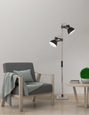 Fehlt Ihnen noch eine tolle Stehleuchte? Mögen Sie den rustikalen und industriellen Style? Dann haben wir hier eine perfekte Lösung für Sie! Diese Stehleuchte ist entworfen von der Marke Mexlite und gehört zu der Gearwood-Kollektion. Das besondere an dieser Lame ist, dass sie zwei Lampenschirme hat. Die Armatur der Lampe ist aus Holz. Die beiden Lampenschirme sind schwarz und aus Metall. Des weiteren verfügt sie über kleine schwarze Details. Diese geben der Stehleuchte den letzten Schliff. Die Lampe hat ein rustikales und industrielles Design was sehr gut in eine moderne Inneneinrichtung passt.