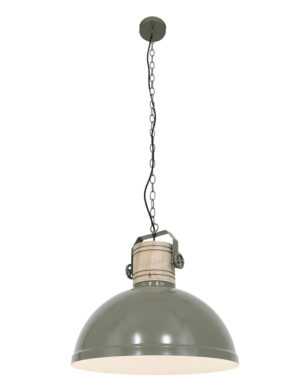 Industrielle Pendelleuchte Holzdetail Mexlite Gearwood grün