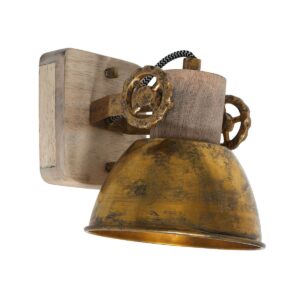 Retro ist zurück! Großartig, dieser schwenkbare Deckenstrahler “Gearwood”. Mexlite hat eine schöne Kombination aus Holz und Metall geschaffen. Auf einer quadratischen Holzgrundplatte sitzt ein metallisches Richtmechanismus mit Zahnrädern. Der Spot selbst hat einen Metallschirm und einen Holzfassungshalter. Das Holz ist naturbelassen und die Metallteile sind bronzefarben. Es ist unglaublich schön, diese Lampe auf ein Retro-Poster zu richten.