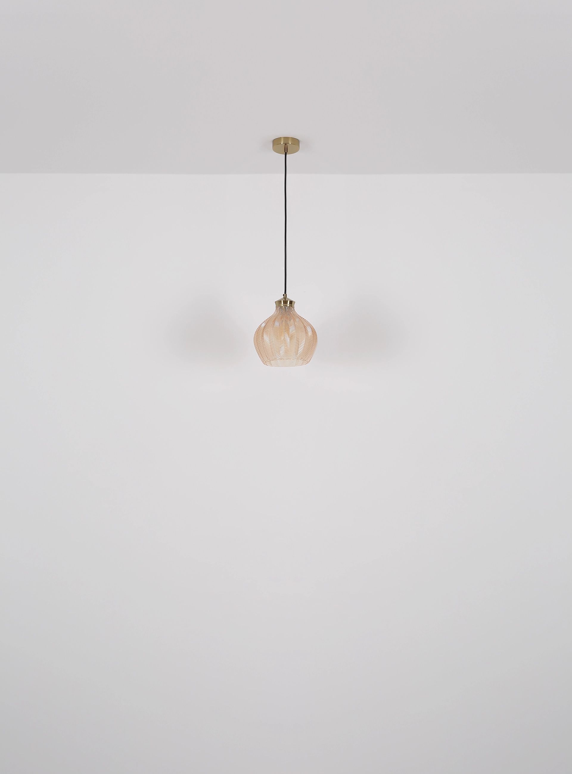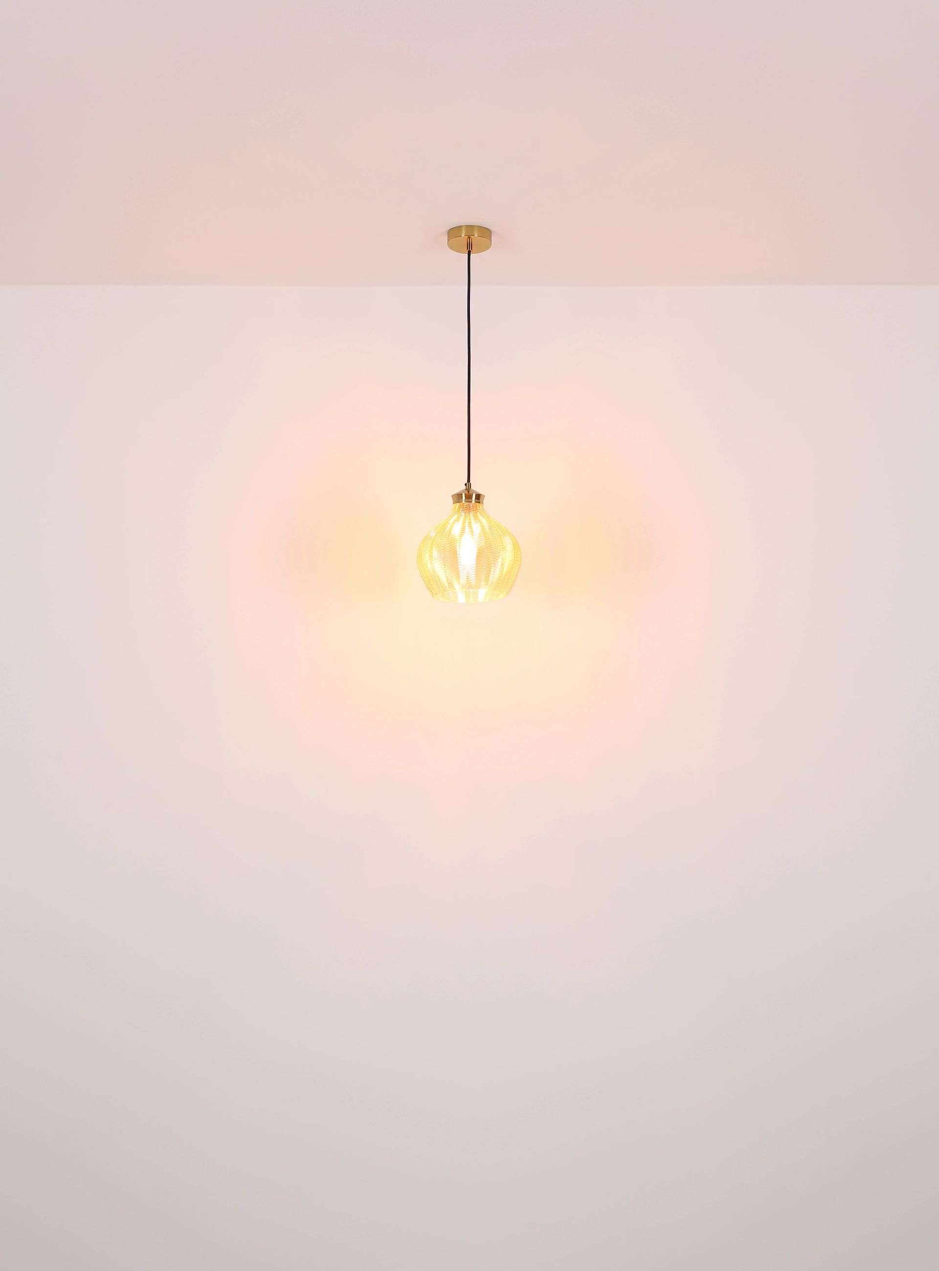 Amberfarbene Pendelleuchte mit dekorativen Rillen Jessica