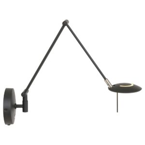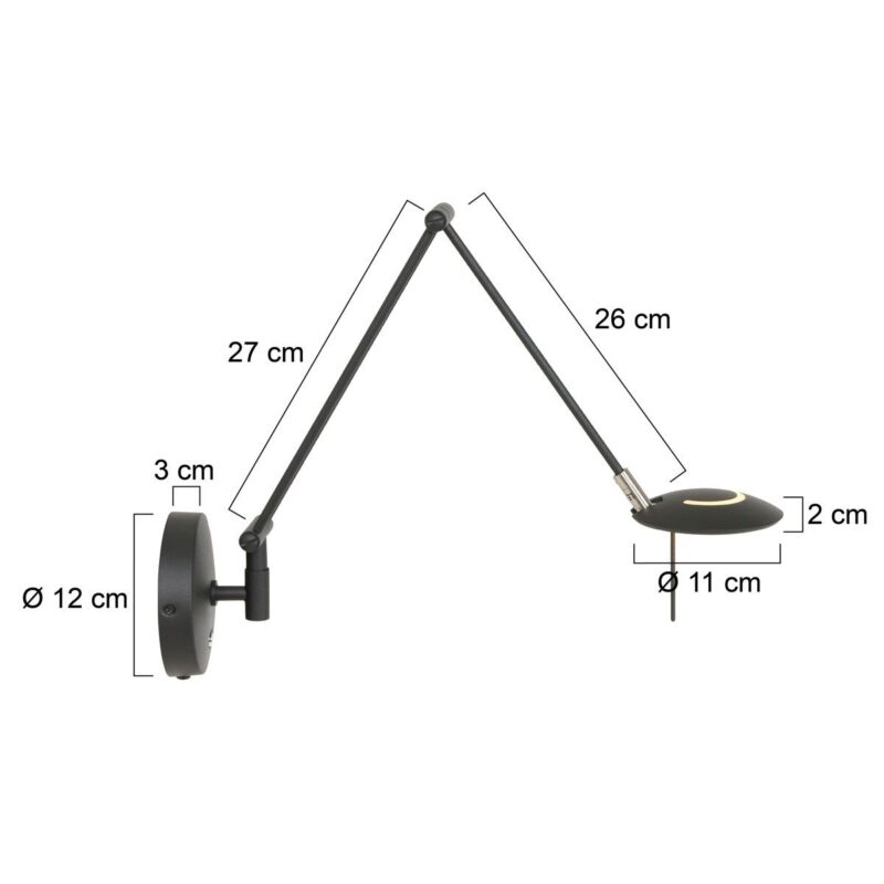 Die schwarze Wandleuchte aus der Zodiac-Serie ist mit einem austauschbaren LED-Modul von 6 Watt (2700 Kelvin, 600 Lumen) ausgestattet. Der Push-Dimmer auf der Wandplatte erleichtert es, die Lichtstärke nach Wunsch einzustellen. Die Lampe verfügt über einen schwenkbaren und drehbaren Arm, sodass Sie das Licht genau dorthin richten können, wo Sie es benötigen. Der Ausleger ist bis maximal 53 cm verstellbar und die Wandplatte hat einen Durchmesser von 12 cm. Das Kabel ist 200 cm lang, was eine einfache Installation ermöglicht.