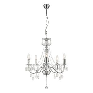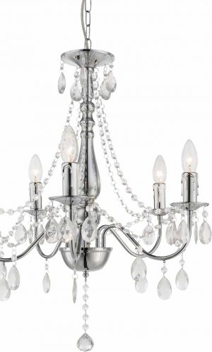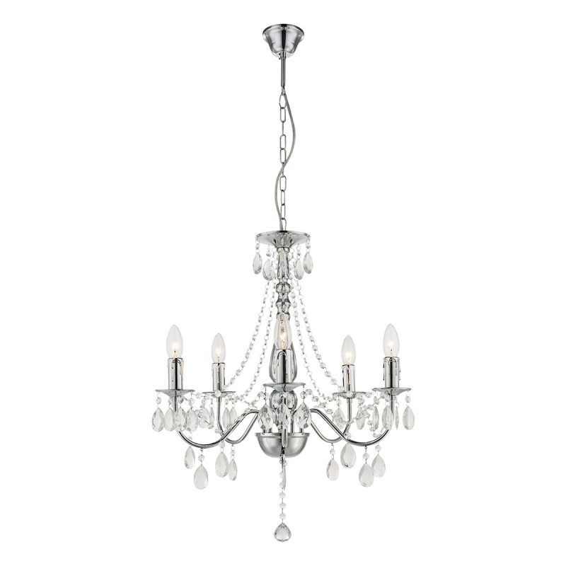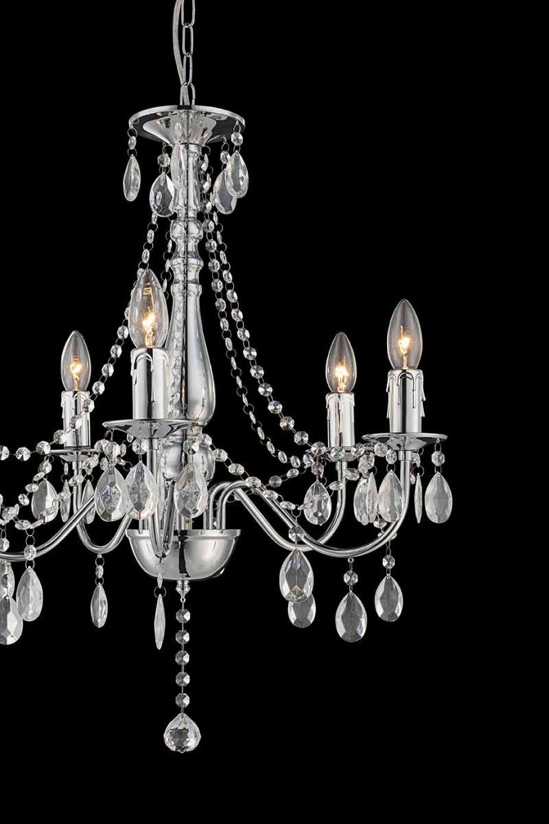 Entdecken Sie die luxuriöse Anziehungskraft des William Kronleuchters, der dank seines stilvollen Designs ein echter Eyecatcher ist. Er wurde entwickelt, um zu beeindrucken und trägt mit seinen strahlenden Acrylkristallen, die das Licht auf bezaubernde Weise streuen, zu einem raffinierten Interieur bei. Diese besondere Lampe bietet Platz für fünf E14-Glühbirnen, die jeweils bis zu 40 Watt betragen können. Fügen Sie jedem Raum mit dieser strahlenden Lampe einen Hauch von Eleganz hinzu.