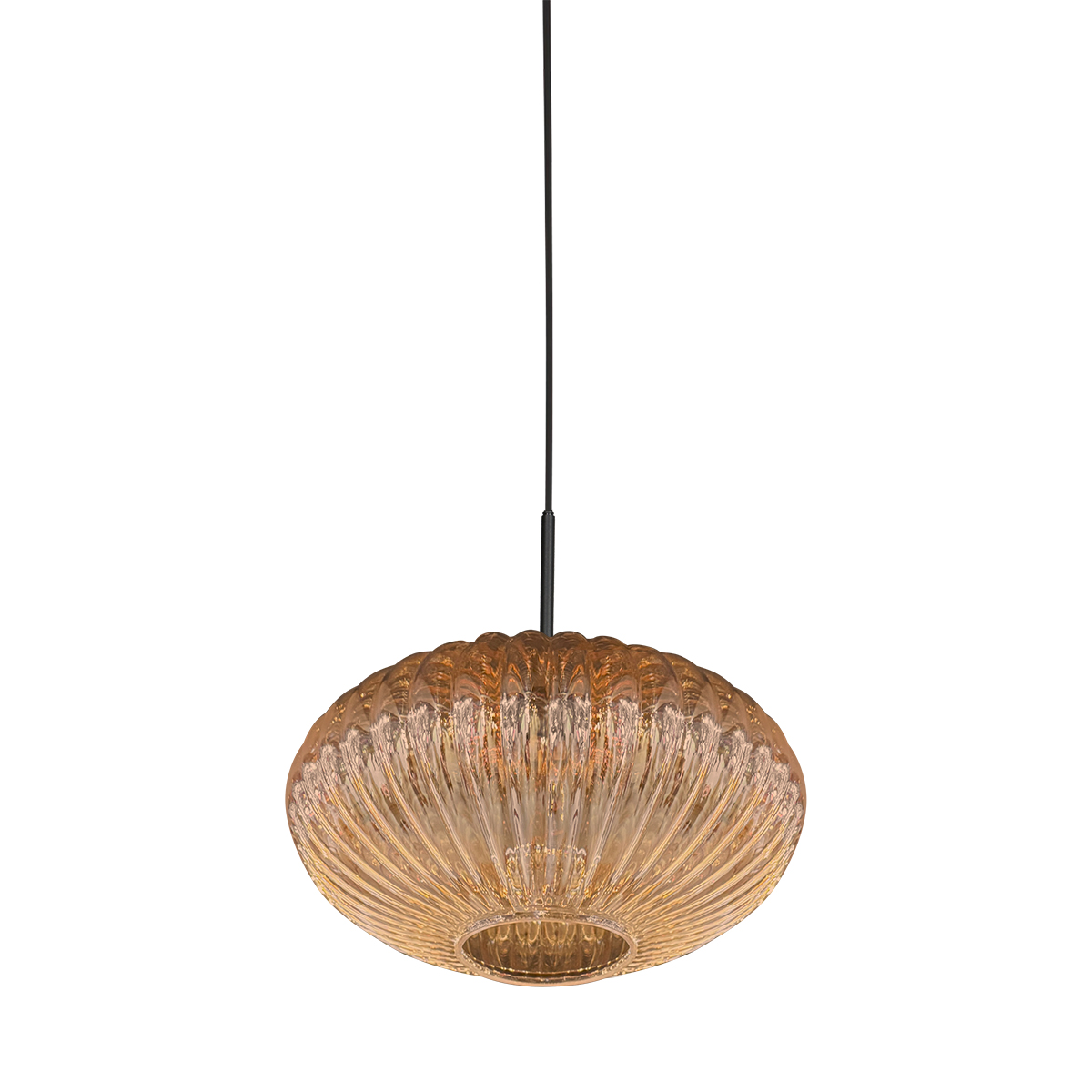 Bernsteinfarbene Hängeleuchte mit klassischem Riffelglas Mexlite HaloSwap