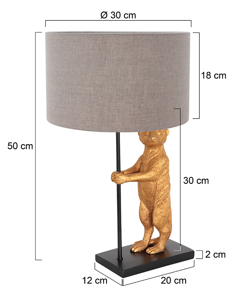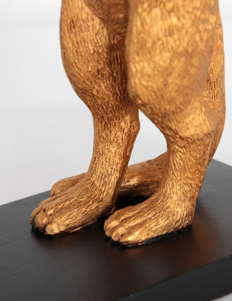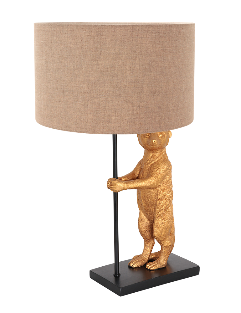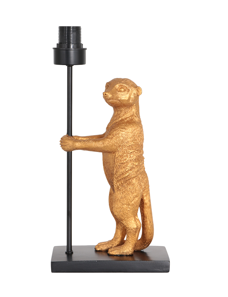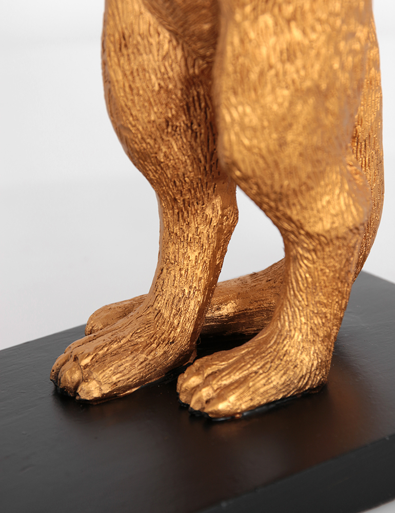 Die schwarze Lampe mit goldenem Erdmännchen aus der Animaux-Kollektion von Anne Lighting ist eine einzigartige Tischlampe, die verspielten Charme mit einer luxuriösen Ausstrahlung kombiniert. Die goldfarbene Erdmännchenfigur bildet eine auffällige Basis und ist mit einer E27-Fassung zwischen den Beinen ausgestattet, geeignet für Leuchtmittel bis 40W.
