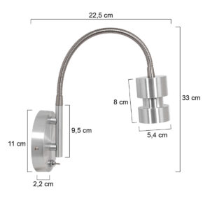 Die Natasja Wandlampe aus Stahl ist die ideale Leselampe für jedes Interieur. Dank des flexiblen Arms kannst du den Lichtstrahl genau dorthin richten, wo du ihn brauchst. Die Lampe wird mit einer GU10 Lichtquelle geliefert, die Dim-to-Warm-Technologie unterstützt, die von 2200 bis 2700 Kelvin variiert und eine maximale Lichtausbeute von 350 Lumen hat. Die Bedienung erfolgt ganz einfach über den Ein/Aus-Schalter an der Wandplatte.