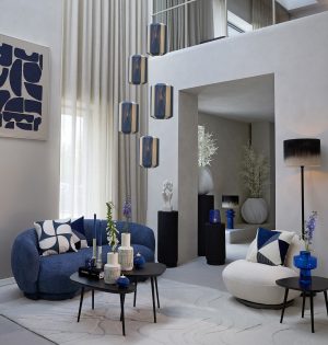 Blau gestreifte Textil-Hängelampe Light & Living Kozana