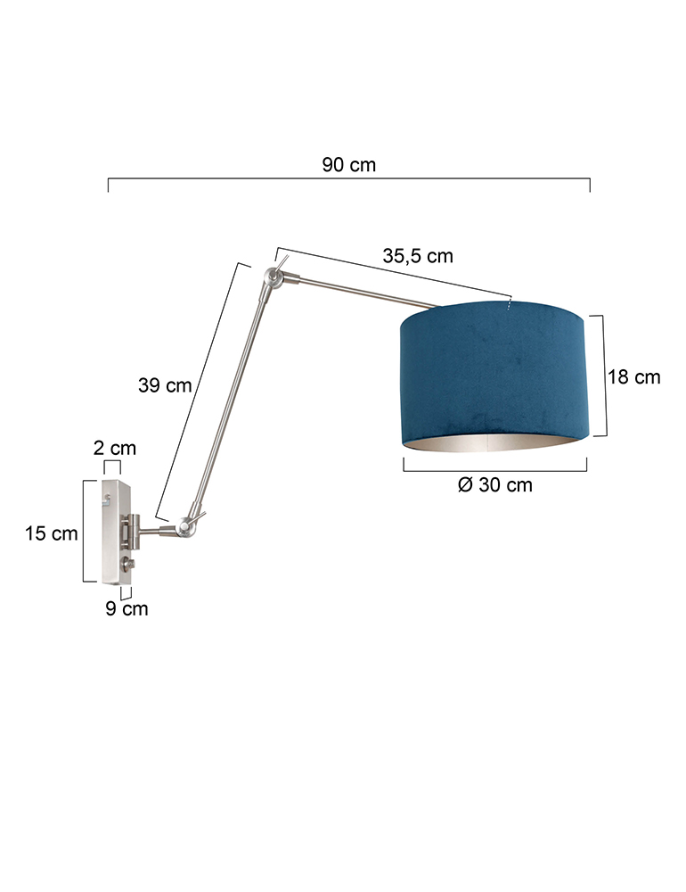 Diese Wandlampe wird mit einem eleganten blauen Velours-Schirm geliefert, der eine luxuriöse und warme Ausstrahlung verleiht. Für zusätzlichen Komfort ist der Dimmer in die Wandplatte integriert und die Lampe wird mit einem Kabel und Stecker geliefert. Eine ideale Beleuchtungslösung für das Esszimmer oder das Wohnzimmer. Inklusive 2 Jahren Werksgarantie.