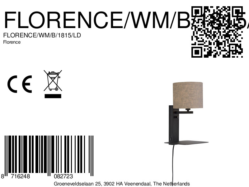 Bleigraue Wandlampe mit Plateau It’s About RoMi Florence