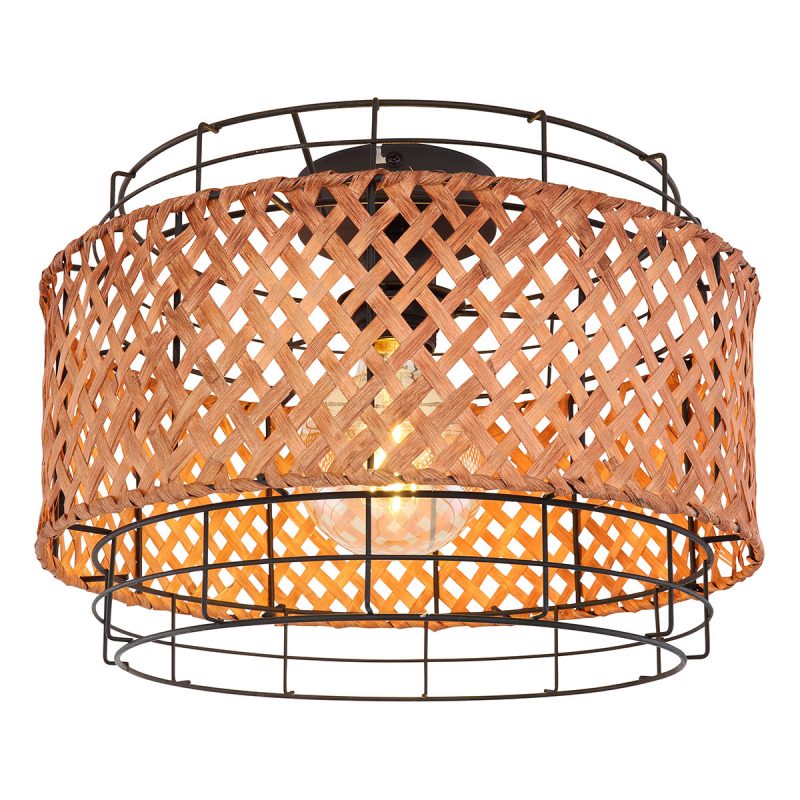 <p Diese Vintage-Deckenlampe beeindruckt mit ihrem industriellen/boho Design. Der schwarze Metallkorb und das Bambusgewebe harmonieren perfekt miteinander und verleihen jedem Raum etwas Besonderes. Die Lampe ist mit einer E27-Fassung ausgestattet und wir empfehlen eine LED-Glühbirne (max. 40W), um den Vintage-Stil zu vervollständigen.