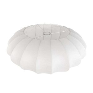 Die Lampe ist in der Höhe zwischen 210 und 240 cm verstellbar und steht auf einer stabilen Fußplatte von 45 cm. Das 250 cm lange Kabel ist mit einem praktischen Fußschalter ausgestattet. Der weiße Schirm ist 60 cm breit und 22,5 cm hoch und sorgt für eine subtile, diffuse Beleuchtung.