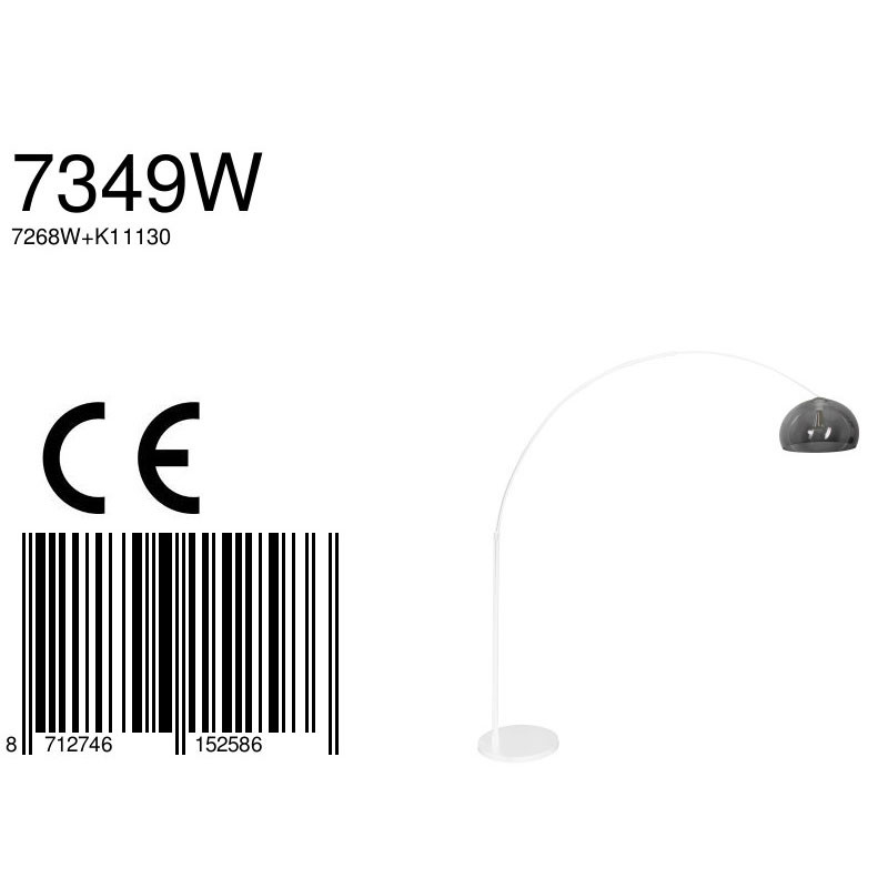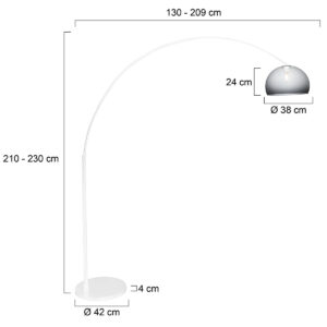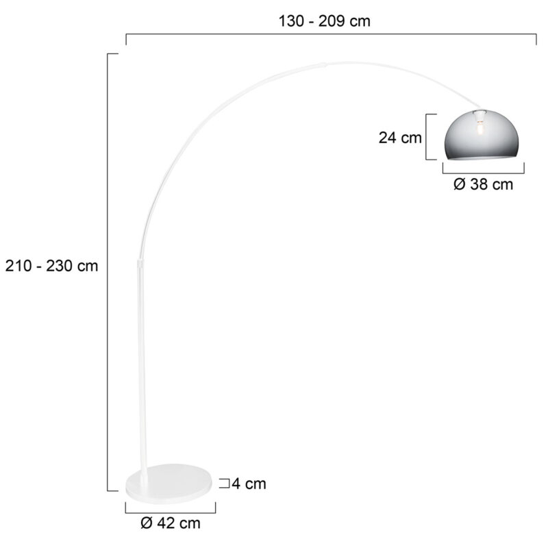 Diese zeitgenössische Bogenlampe aus der Sparkled Light-Serie fügt jedem modernen Interieur einen eleganten Akzent hinzu. Das weiße Metallgestell bietet eine solide und stabile Basis, während der rauchglasene Schirm mit einem Durchmesser von 38 cm eine stimmungsvolle Lichtverteilung erzeugt. Die E27-Fassung macht die Lampe geeignet für Lichtquellen bis 40 Watt.