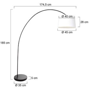 Schwarze Bogenlampe mit weißem Schirm Mexlite Solva
