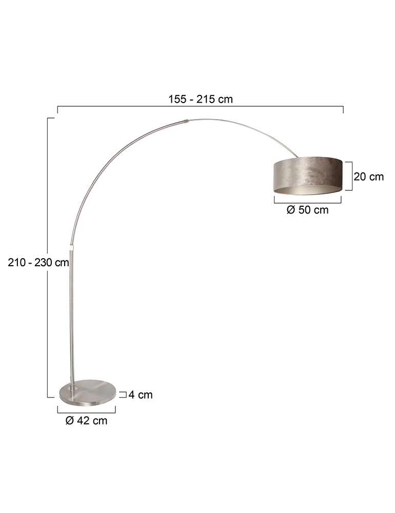 Mit ihrer eleganten Form und luxuriösen Verarbeitung ist diese Bogenlampe ein Blickfang in jedem Interieur. Der sanfte silberne Schirm reflektiert das Licht auf eine stimmungsvolle Weise, während die verstellbare Höhe und der Bogen für optimale Lichtverteilung sorgen. Wechsle den Schirm ganz einfach aus, um eine neue Farbe zu erhalten und verleih deinem Interieur im Handumdrehen ein frisches Aussehen.