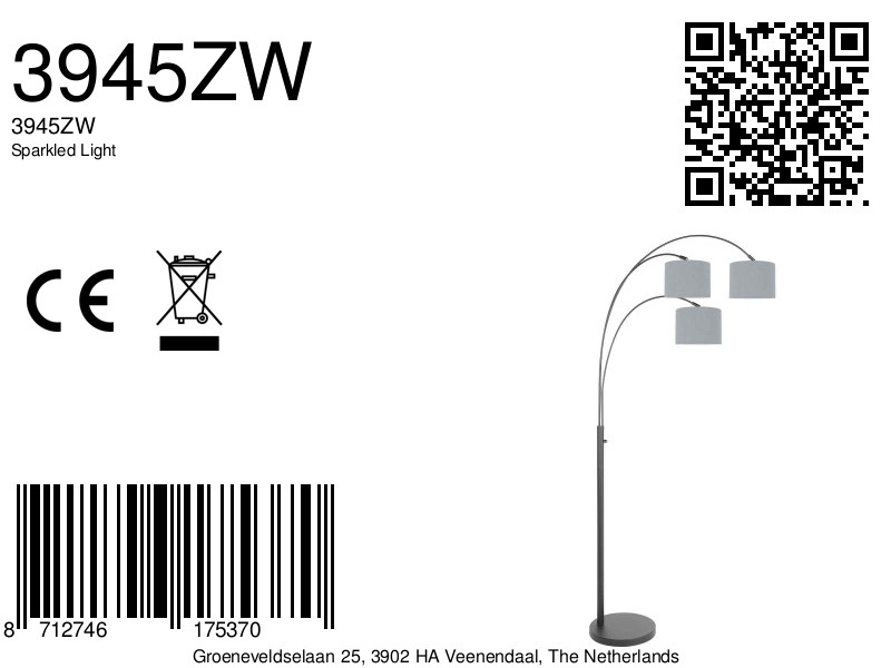 Die Stehlampe Bogenlampe mit 3 Lichtquellen aus der Sparkled Light-Serie von Steinhauer bietet eine trendige Beleuchtung für Esszimmer und Wohnzimmer. Diese Lampe, hergestellt aus Metall und Stoff, hat ein modernes Erscheinungsbild. Die schwarze Ausführung verleiht jedem Interieur eine zeitgemäße Note. Mit einer E27 Fassung und IP20 Staubdichtheit kombiniert diese Stehlampe Stil und Funktionalität.