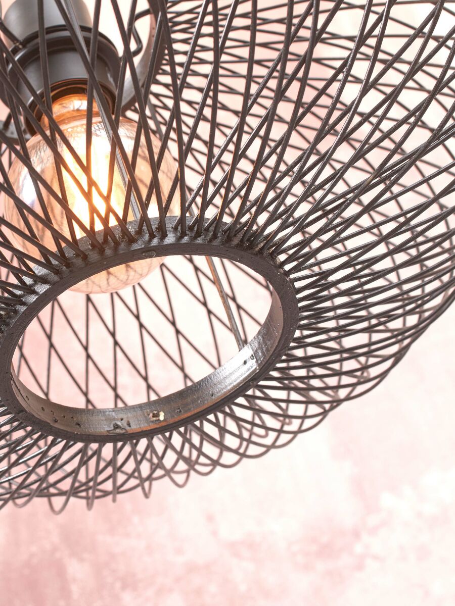 Die schwarze Bambus-Bohemian-Deckenleuchte Cango ist ideal, um eine warme Atmosphäre in Esszimmern, Fluren, Schlafzimmern und Wohnzimmern zu schaffen. Diese Lampe verfügt über eine E27-Fassung und eine IP20 Staubdichtheit, die Stil mit funktionaler Beleuchtung kombiniert.