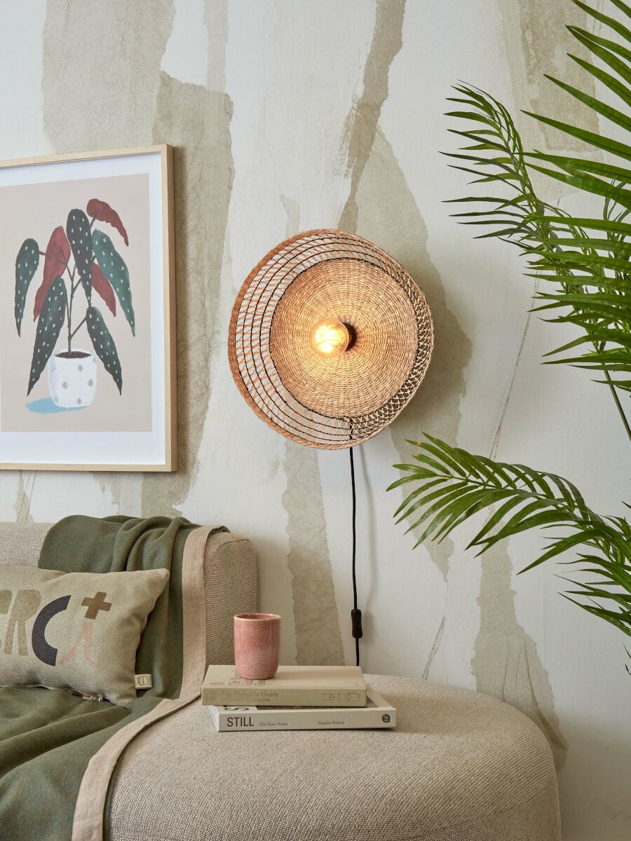 Bohemian-Schwarz-Seegras-Metall-Wandleuchte GOOD&MOJO Pantanal