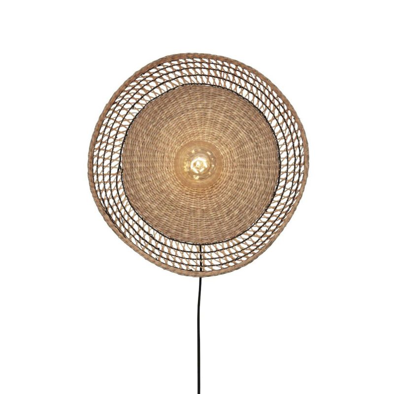Schwarze Wandleuchte aus Metall und Seegras, im Bohemian-Stil, GOOD&MOJO Pantanal. Geeignet für das Esszimmer, Schlafzimmer oder Wohnzimmer. Ausgestattet mit E27-Fassung und staubdicht (IP20). Ohne Lichtquelle. Fügen Sie Ihrem Interieur mit dieser eleganten Lampe einen einzigartigen und exotischen Look hinzu. Verwandle deine Wand in ein Kunstwerk.