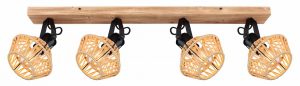 Fallen Sie auf mit diesem stilvollen Spotlight, das entworfen wurde, um Ihr Interieur zu bereichern. Es verfügt über vier mattschwarze Scharniere, die an einer schlanken Deckenhalterung mit einer wunderschönen Holzoberfläche befestigt sind, Maße 80x16cm. Jedes Scharnier hat eine E27-Fassung, die fachmännisch durch einen Schirm geschützt ist, der mit Roeplikmos texturiert ist (Ø15.5cm). Dank der E27-Fassung können Sie die Lichtfarbe und Helligkeit bis zu einer maximalen Leistung von 60 Watt wählen. Kombinieren Sie dies mit anderen Modellen aus derselben Serie für ein harmonisches Finish Ihres Wohnraums.