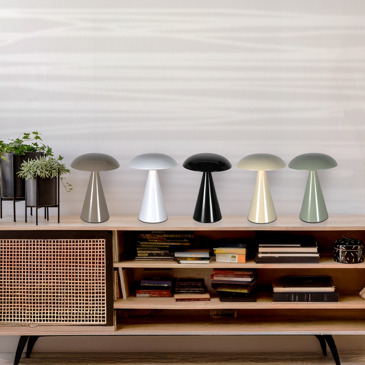 Diese braune wiederaufladbare Tischlampe in Pilzform kombiniert einen warmen Farbakzent mit einem kompakten und zeitgemäßen Design. Durch den kabellosen Betrieb ist die Lampe flexibel einsetzbar auf einem Beistelltisch, Nachttisch oder Schreibtisch, ohne von einer Steckdose abhängig zu sein. Der Schirm ist neigbar, sodass du das Licht einfach an die gewünschte Richtung anpassen kannst.