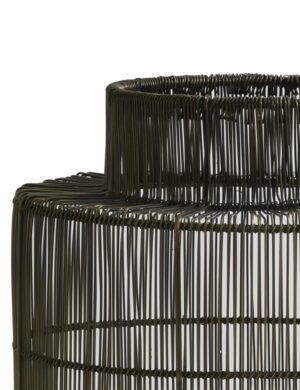 Bei der Braune Käfig Tischleuchte Light & Living handel es ich um eine 50 Zentimeter hohe Lampe. Der Anschluss an den Strom erfolgt mit Hilfe eines Steckers, der in die Steckdose gesteckt werden muss. Die Lampe verfügt über eine E27-Fassung. Das hier zum Einsatz kommende Material ist Metall. Die Schutzklasse liegt bei IP0 20 Staubdicht. Die Produktmaße betragen 50 Zentimeter Höhe, 25 Zentimeter Breite und 25 Zentimeter Tiefe.