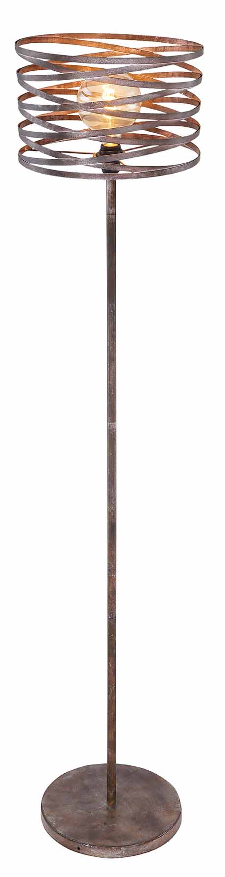 <pDiese zeitlose Stehlampe aus der Marco-Serie wird zum Mittelpunkt Ihrer Räume mit ihrem wunderschönen Design. Von einem rostfarbenen Sockel führt ein Metallstab von fast 1,6 m zu einer E27-Buchse, die mit einer Lampe Ihrer Wahl bis zu einer maximalen Leistung von 60 Watt ausgestattet werden kann. Die E27-Buchse ist von einem formschönen spiralförmigen Metallschirm (Ø35 cm) umgeben.