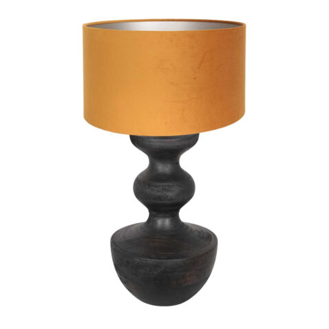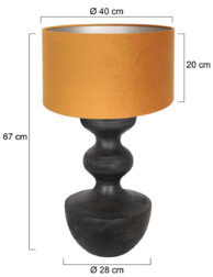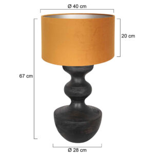 Die Lyons Tischlampe strahlt zeitlose Eleganz aus durch ihren hochwertigen Holzfuß in einem tiefen, dunkelbraunen Farbton. Der luxuriöse gold/gelbe Samtschirm mit einem Durchmesser von 40 cm und einer Höhe von 20 cm macht die Lampe zu einem stimmungsvollen Blickfang. Mit einer Gesamthöhe von 70 cm bringt diese Tischlampe Stil und Wärme in Ihr Esszimmer oder Wohnzimmer.