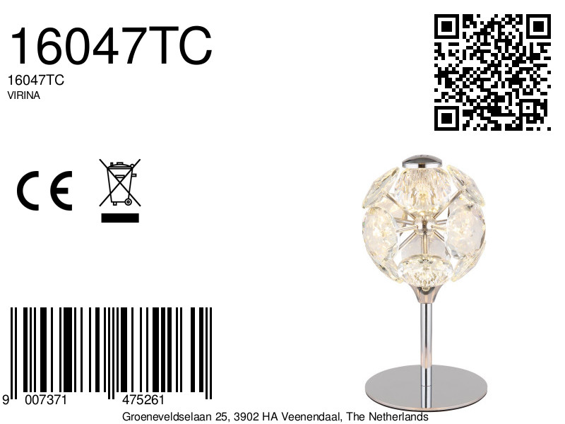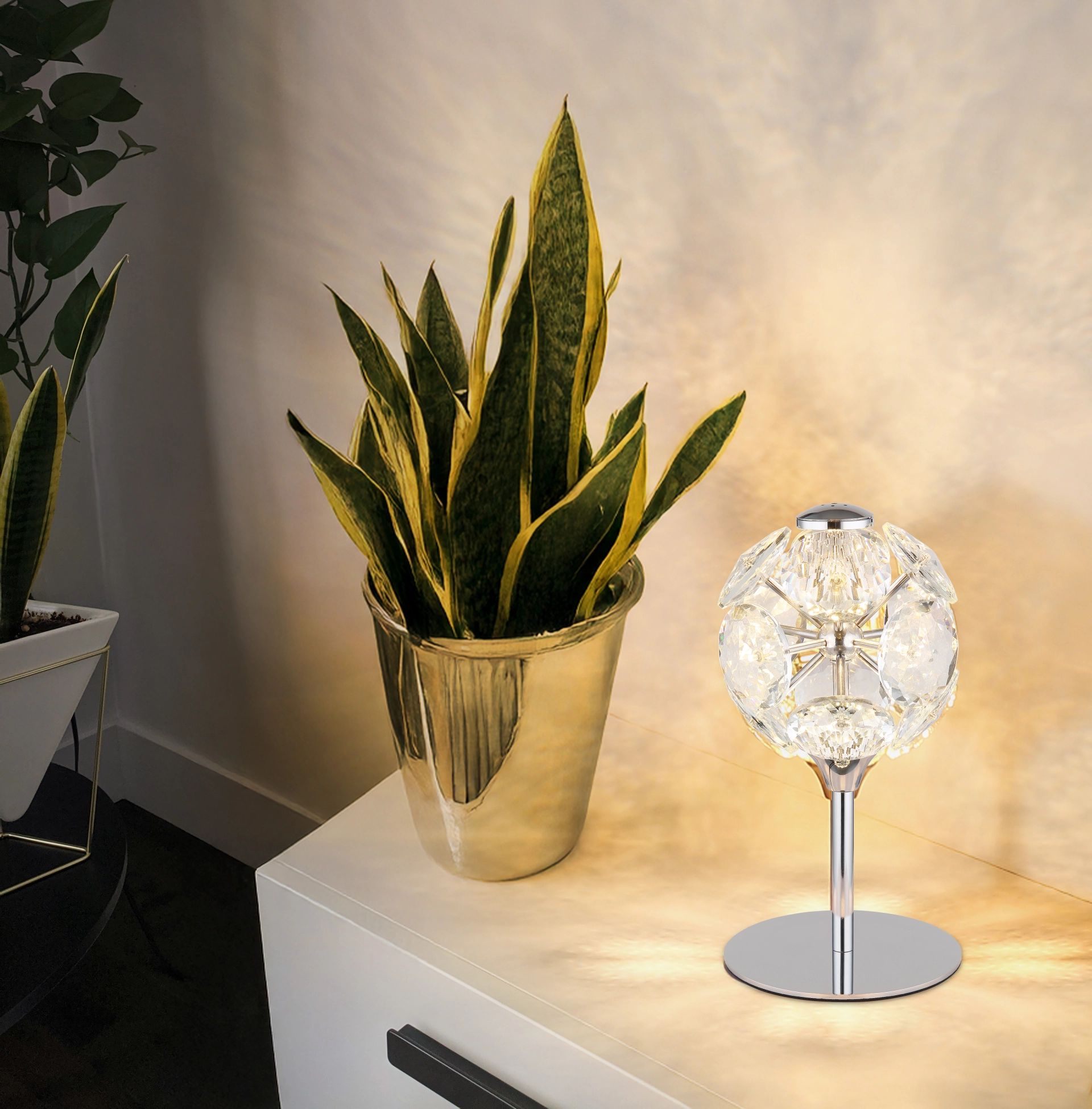 Die VIRINA Tischlampe vereint elegantes Design mit praktischer Beleuchtung. Mit einem runden, verchromten Metallfuß und einem strahlenden K9 Kristallschirm bietet diese Lampe eine luxuriöse Ausstrahlung, die jedes Interieur aufwertet. Mit einem Durchmesser von 150 mm ist diese Lampe perfekt für kleinere Tische, Kommoden oder Nachttische. Die K9 Kristalle funkeln im Licht und schaffen ein bezauberndes Funkeln, das zu einer warmen und einladenden Atmosphäre beiträgt.