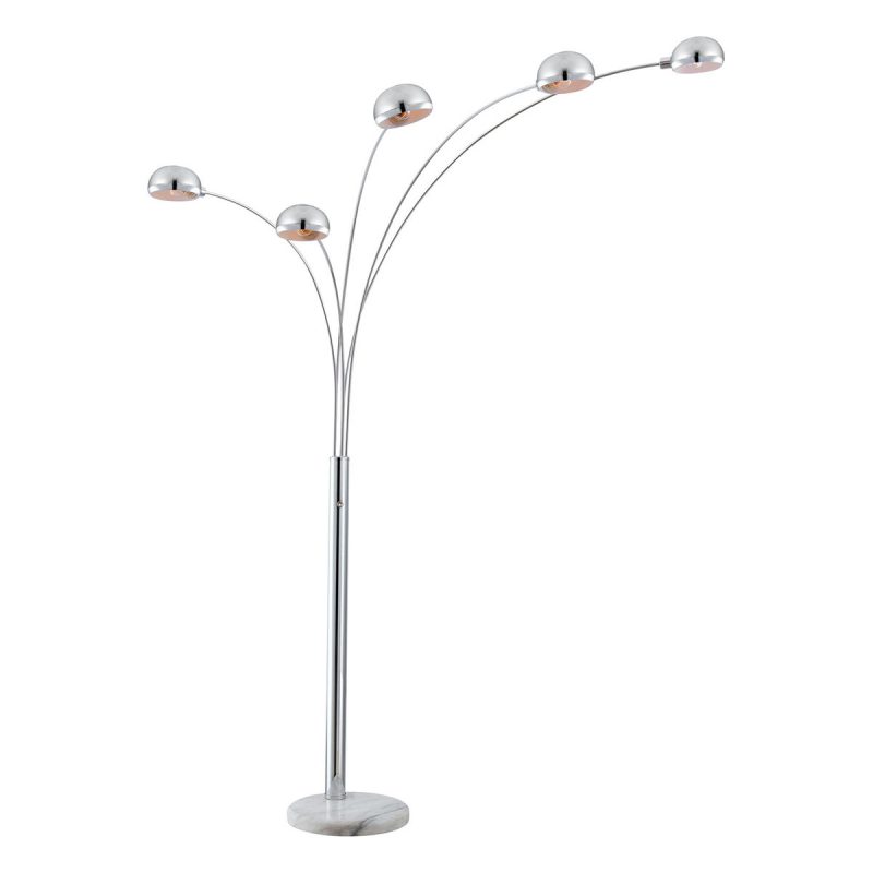 Fügen Sie Ihrem Raum einen Hauch von Modernität und Kreativität hinzu mit unserer vielseitigen Stehlampe, die durch ihr raffiniertes verchromtes Finish und den stabilen Marmorsockel gekennzeichnet ist. Die Lampe verfügt über fünf verstellbare Spotlichter, die mit E14-Leuchten bis zu 40W kompatibel sind, was Ihnen ermöglicht, die Lichtintensität und -farbe nach Ihren eigenen Wünschen zu personalisieren. Zusätzliche Details umfassen einen leicht erreichbaren Schalter, ein robustes Kabel von 180 cm und eine Gesamthöhe von 200 cm, die mühelos in jedes Interieur integriert werden kann.