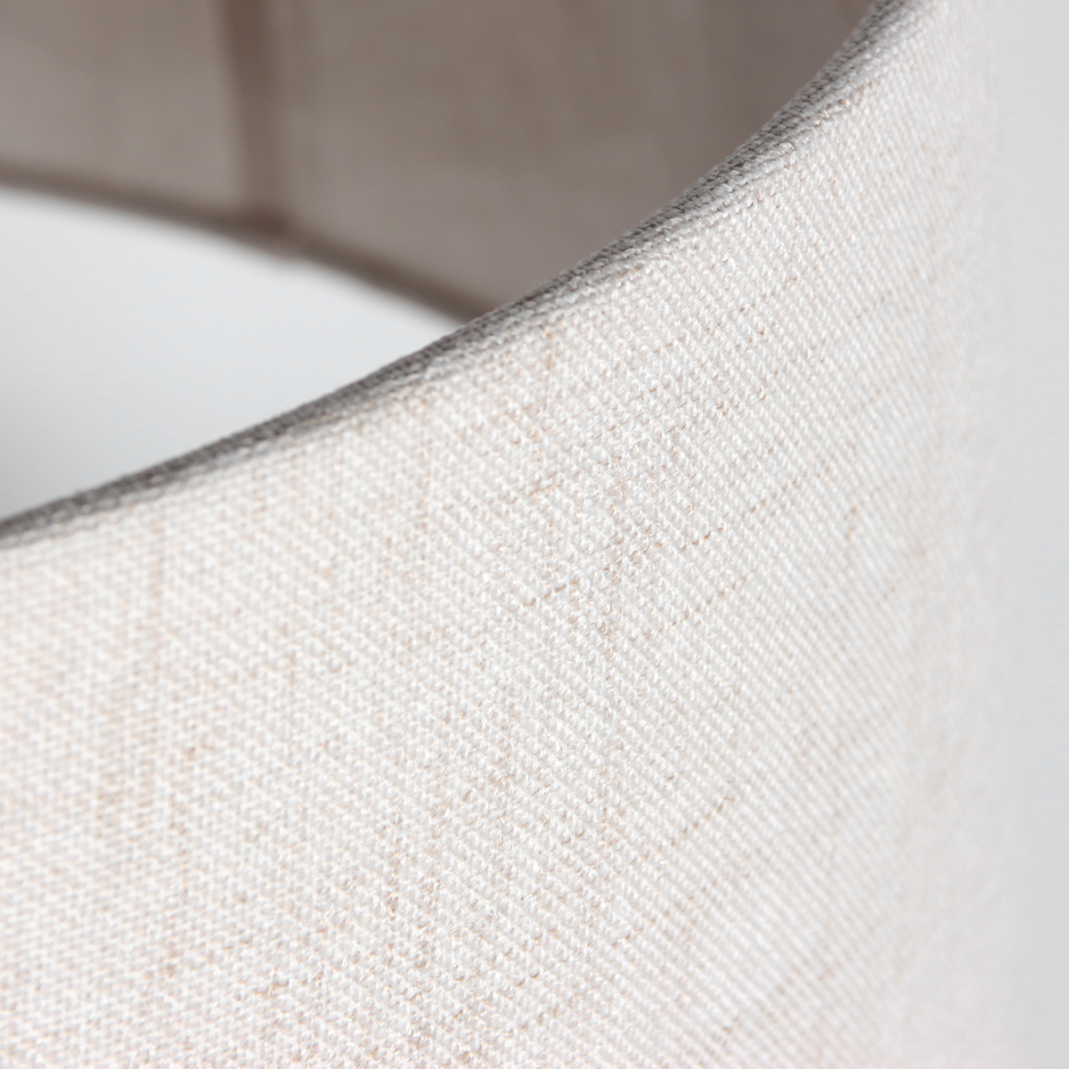Dieser stilvolle Lampenschirm aus cremefarbenem Leinen mit einem grauen Unterton strahlt Ruhe und Raffinesse aus. Die weiße Innenseite sorgt für eine helle und gleichmäßige Lichtverteilung, ideal um eine helle, entspannte Atmosphäre zu schaffen. Die natürliche Textur des Leinen verleiht dem Schirm ein warmes und neutrales Erscheinungsbild, das in nahezu jedem Interieur zur Geltung kommt.