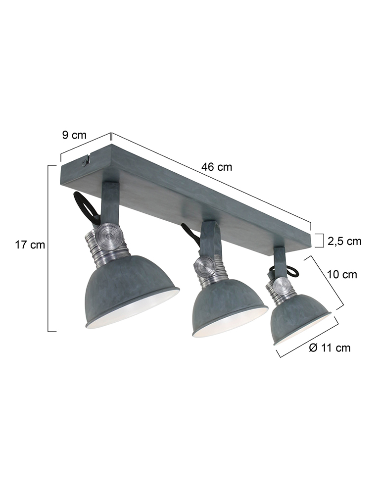 Wenn Sie den schönen industriellen Stil mögen, schauen Sie sich diese graue 3-flammige Deckenlampe im Industrie-Design von Steinhauer genauer an. Die graue Farbe wurde so bearbeitet, dass die Lampe ein Betonlook erhalten hat. Völlig industriell, und das wird durch Details wie das Gewinde und das Drehrad an allen drei Spots verstärkt. Damit können Sie sie unabhängig voneinander in jede gewünschte Richtung einstellen. So wird diese Deckenlampe zu einem wunderschönen Detail, das Ihr industrielles Interieur perfekt abrundet!