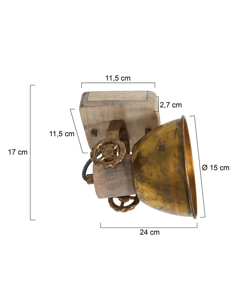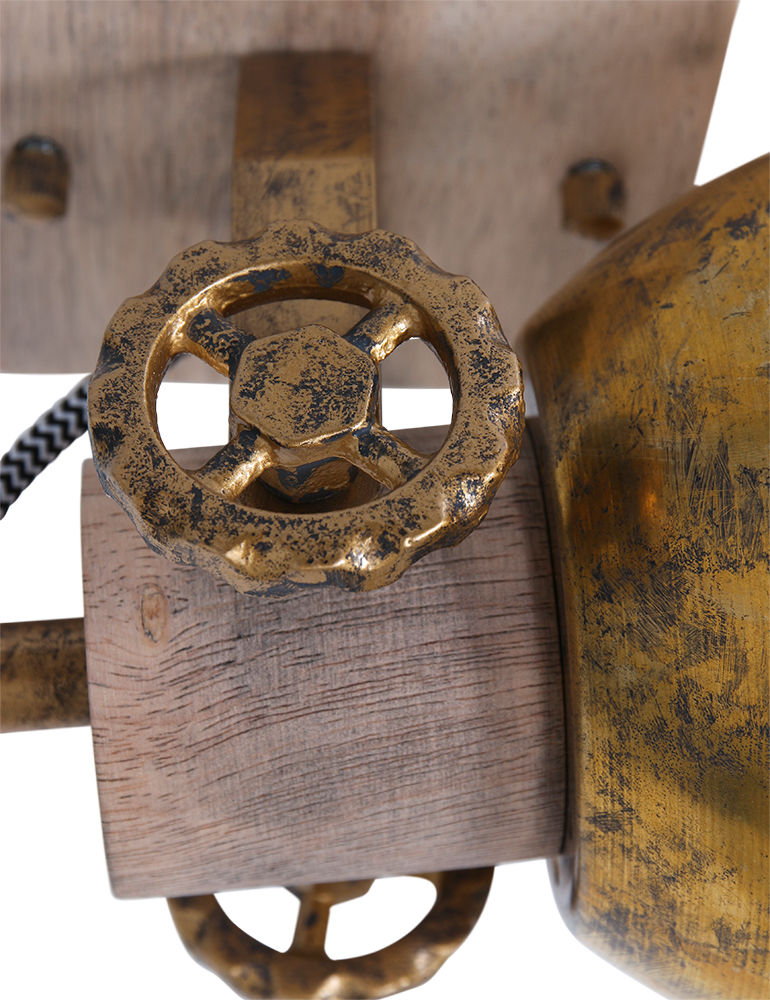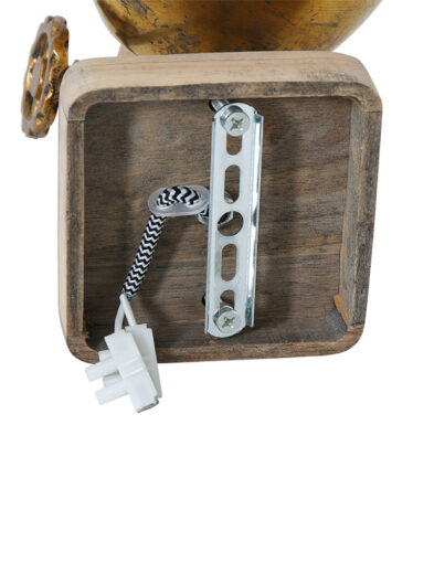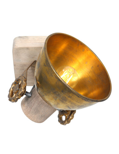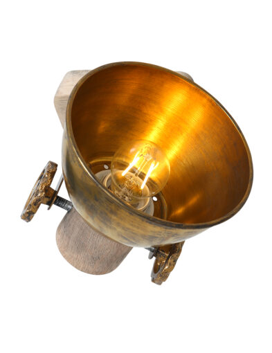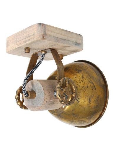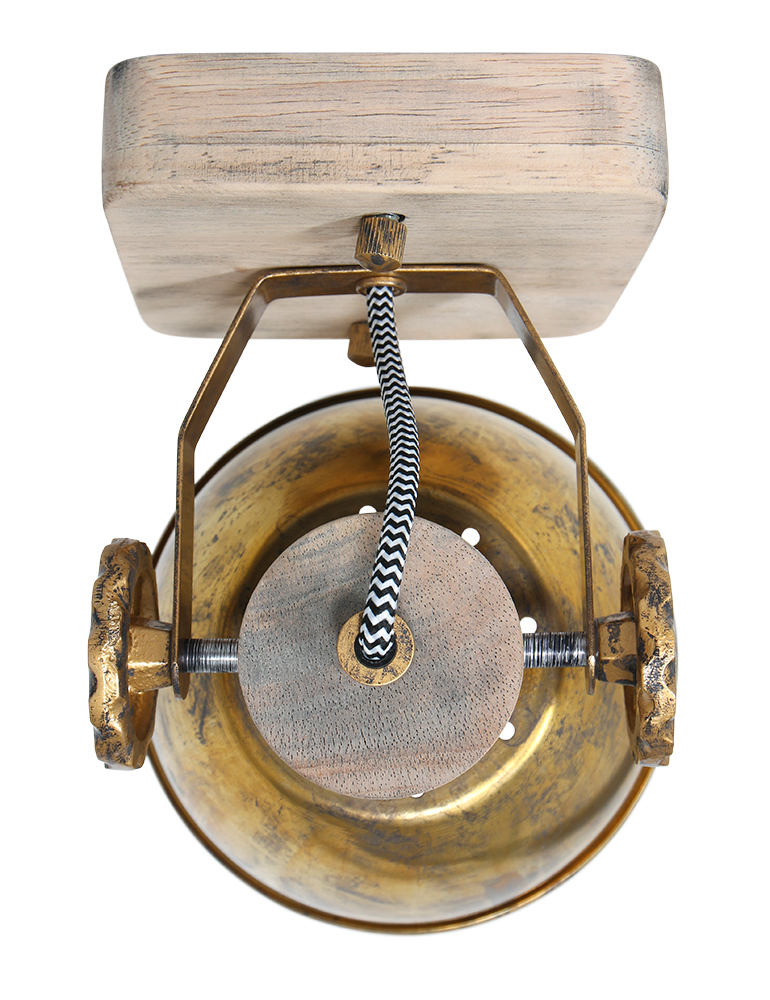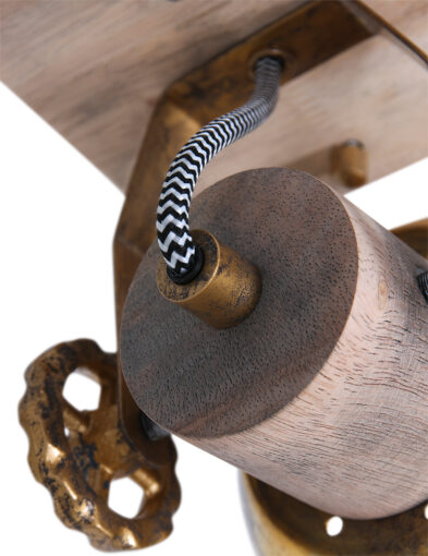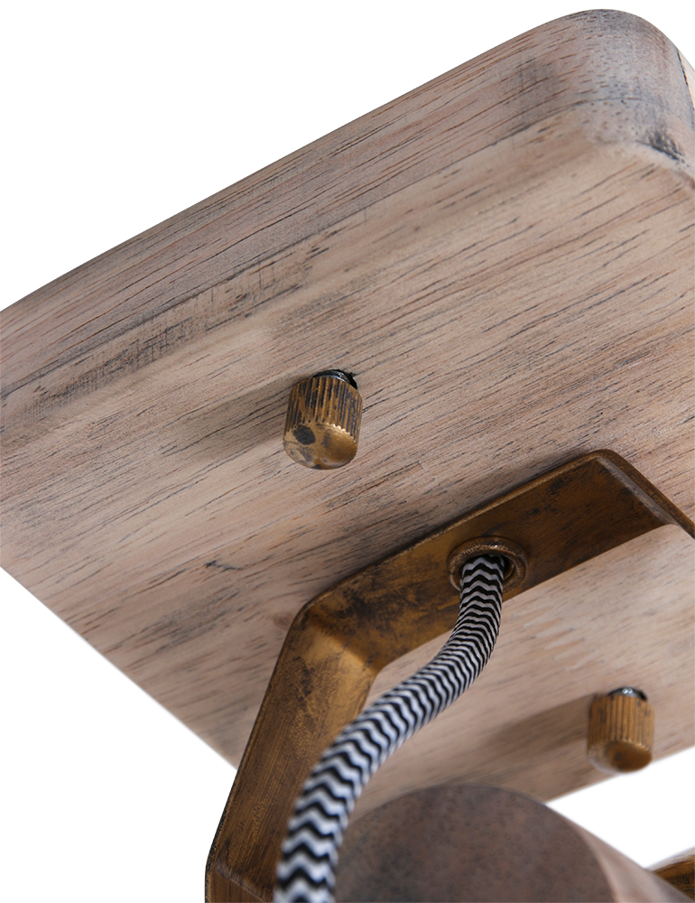 Retro ist zurück! Großartig, dieser schwenkbare Deckenstrahler “Gearwood”. Mexlite hat eine schöne Kombination aus Holz und Metall geschaffen. Auf einer quadratischen Holzgrundplatte sitzt ein metallisches Richtmechanismus mit Zahnrädern. Der Spot selbst hat einen Metallschirm und einen Holzfassungshalter. Das Holz ist naturbelassen und die Metallteile sind bronzefarben. Es ist unglaublich schön, diese Lampe auf ein Retro-Poster zu richten.