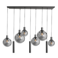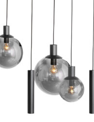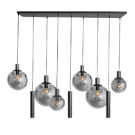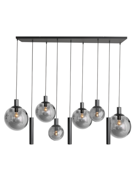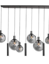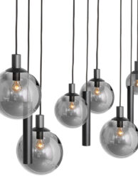 Design 9-flammige Pendelleuchte aus der Bollique-Serie von Steinhauer, eine Kombination aus 6 rauchfarbenen Glaskugeln und 3 Röhren für eine ausgewogene Lichtverteilung. Die Kugeln variieren in der Größe (20, 25 und 30 cm) und sorgen für eine verspielte und stimmungsvolle Ausstrahlung. Die Lampe hat eine Breite von 150 cm und eine Tiefe von 55 cm, mit einer verstellbaren Höhe zwischen 35 und 150 cm. Die Röhren sind mit dimmbaren Lichtquellen von 4,9 W ausgestattet, die von 2200 bis 2700 Kelvin einstellbar sind. Inkl. 2 Jahre Herstellergarantie.