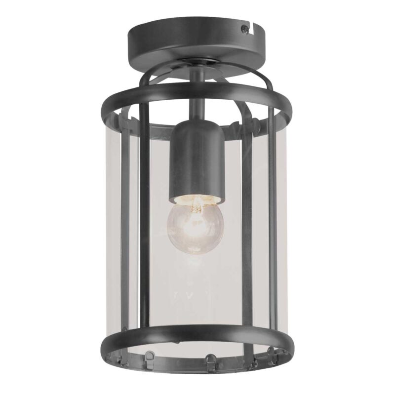 Schwarze Klassische Deckenlampe Glas/Metall Laterne Steinhauer Pimpernel