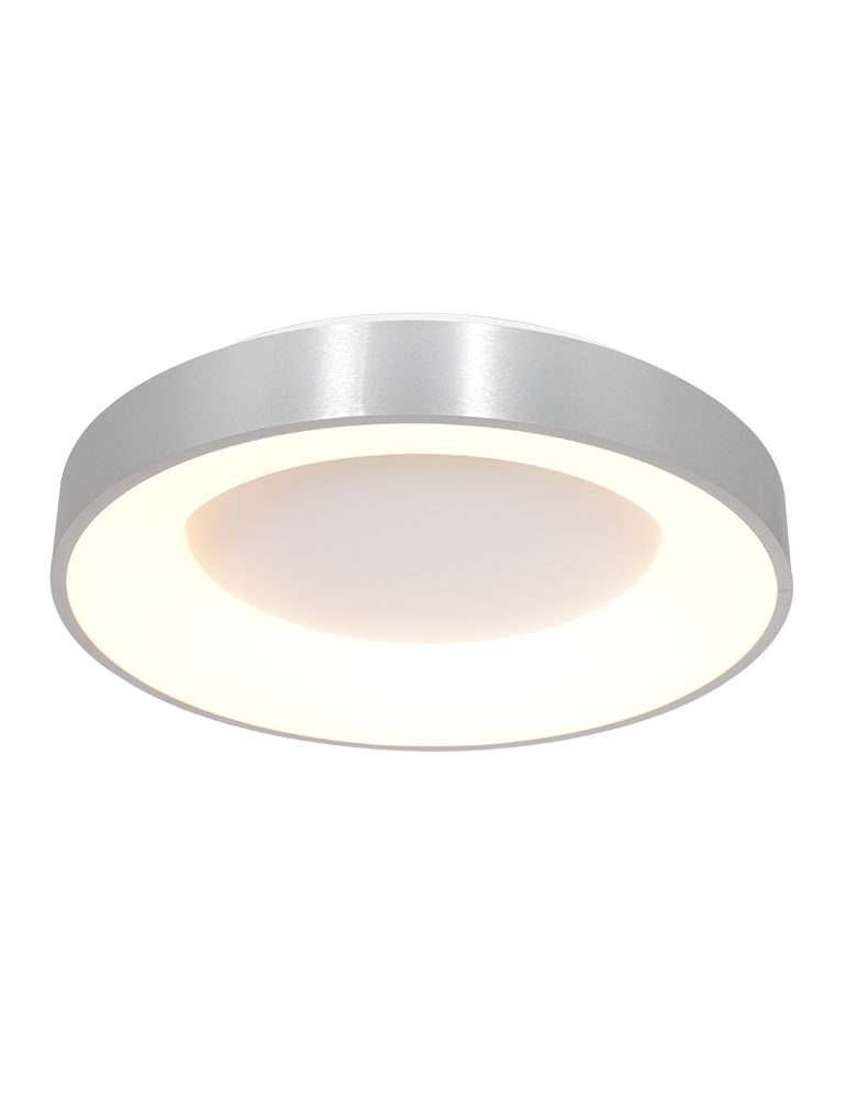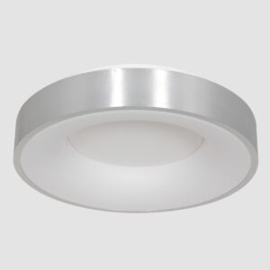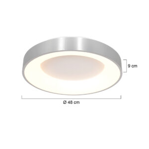 Die silberfarbene Deckenleuchte aus der Ringlede-Serie kombiniert modernes Design mit funktionaler Beleuchtung. Mit einem Durchmesser von 48 cm und einem integrierten 40 Watt LED-Modul bietet diese Lampe eine Lichtausbeute von 3600 Lumen und eine warme Lichttemperatur von 2700 Kelvin. Die Lampe ist kompatibel mit einem externen Dimmer (nicht im Lieferumfang enthalten), sodass du einfach die gewünschte Lichtstärke einstellen kannst.