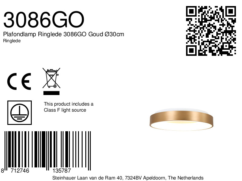 Die Ringlede-Deckenlampe in Gold verleiht deinem Interieur eine luxuriöse Ausstrahlung. Ausgestattet mit einem austauschbaren 30-Watt-LED-Modul mit einer Lichtausbeute von 2800 Lumen und einer warmen Farbtemperatur von 2700 Kelvin. Die Lampe ist mit einem dimmbaren Treiber ausgestattet, wodurch sie einfach mit einem Wandschalter (nicht im Lieferumfang enthalten) gedimmt werden kann. Der Durchmesser von 30 cm und die Höhe von 9 cm sorgen für ein raffiniertes und stilvolles Finish.